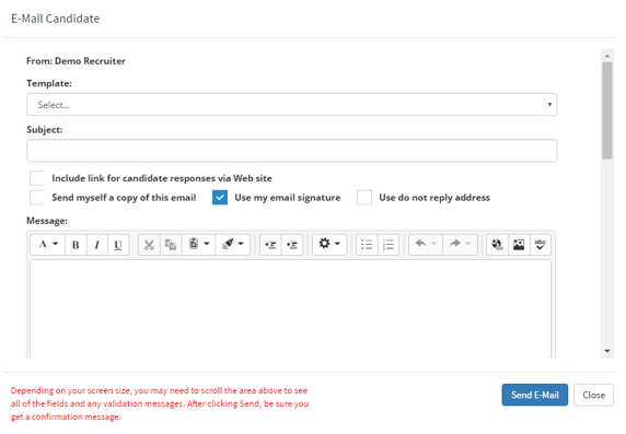 - A new popup window should appear to email the candidate.