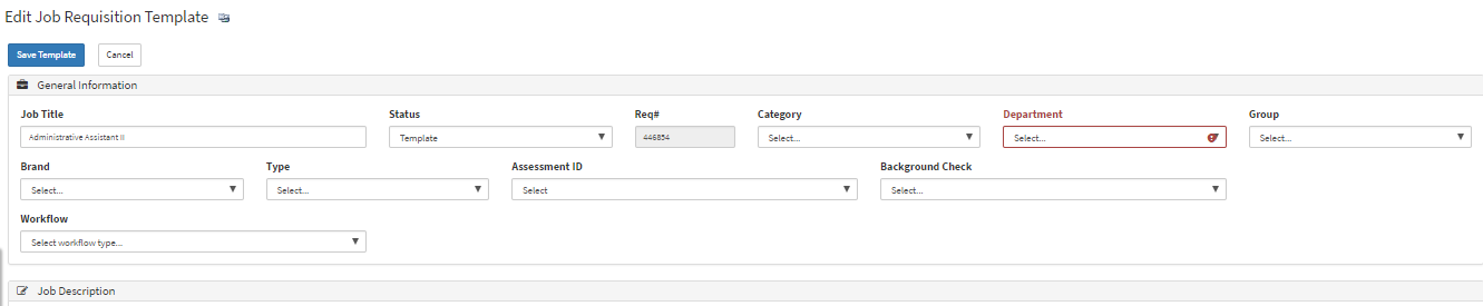 - The job template should now be available as a drop-down option when creating a job requisition.