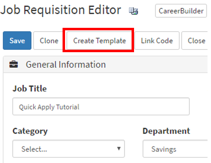 - If you have an existing requisition you can turn it into a template by selecting the "Create Template" button in the Job Requisition Editor page.