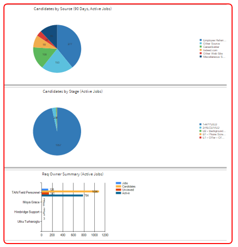 Candidates by Source (90 Days, Active Jobs) – Pie chart showing where candidates are coming from