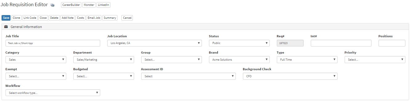 - This will now take you to the “Job Editor Requisition” page as pictured below.
