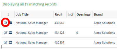 - On a job requisition, click on the “Notepad and Pencil” icon. (outlined in red below)