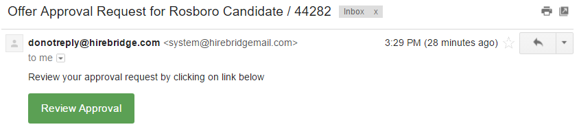 When the "Review Approval" is selected, it will take them to the Hirebridge website. This is where the chained approver will either "Approve" or "Decline" the offer.