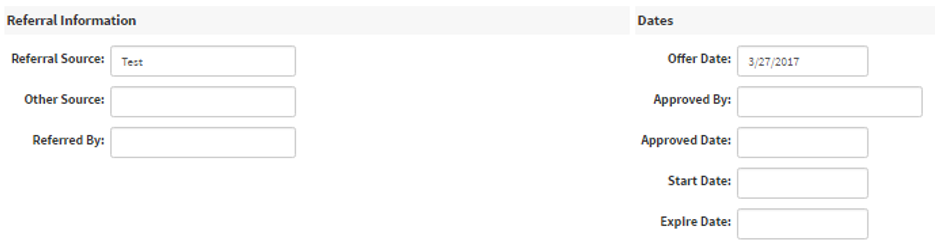 - Dates - Information on who the offer was approved by, approval dates, start date and expiration dates