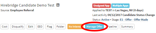 - This will now take you to the candidate profile where you will select "Manage Offer".