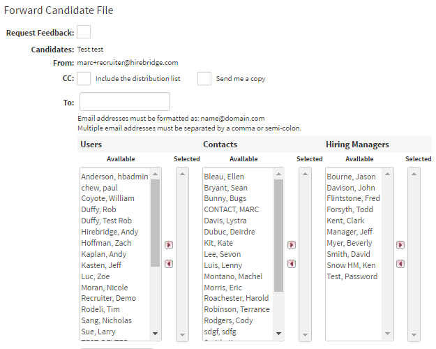 - This page will give you to option to request feedback from the contacts that the candidate was forwarded to.