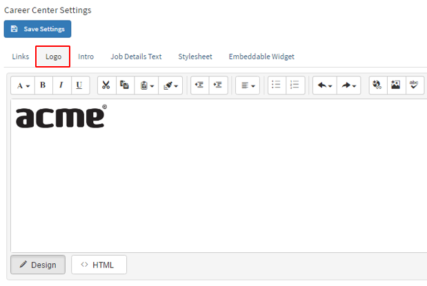 - This will take you to the "Career Center Settings" page where you will be able to edit the company logo.