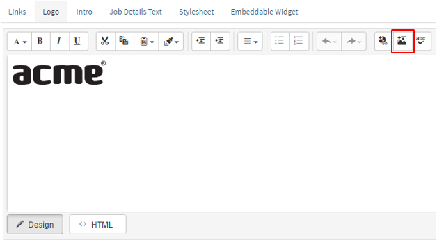 - To add a new company logo simply select the picture icon on the right. (outlined in red below)