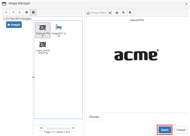 - Once satisfied select the blue "Insert" button on the bottom of the page.