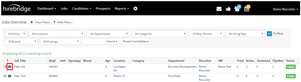 - To import multiple candidates into a requisition, select the briefcase icon outlined below.