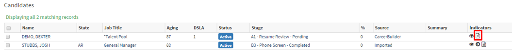 If a paper icon appears next to the candidate’s name, it means an original resume has been uploaded.