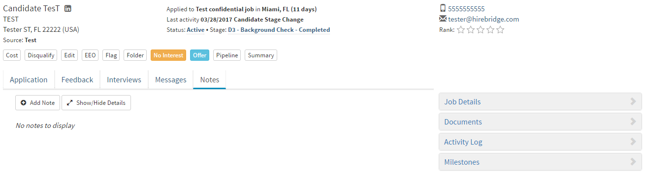Changing a candidate’s stage helps you track where they are in the hiring process—from initial review to final offer. This functionality allows for better visibility and coordination across your hiring team.