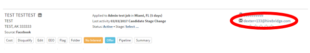 You can also email candidates quickly by clicking on the candidate's email in the top right corner.