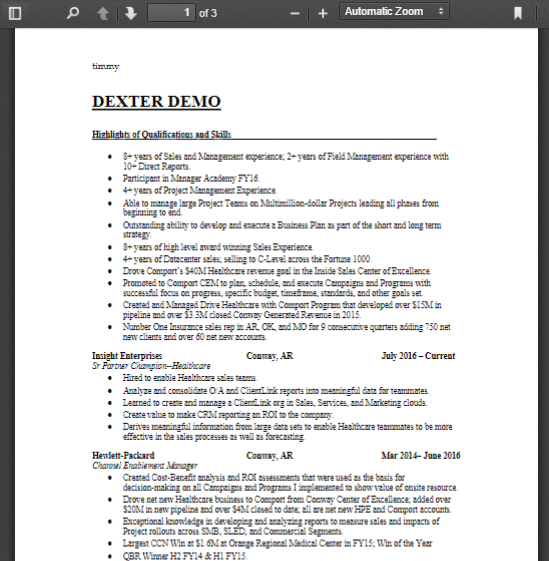 - The resume will now download as a PDF file.