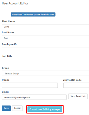 - On the profile, it will now give you the option to turn the user back into a hiring manager.
