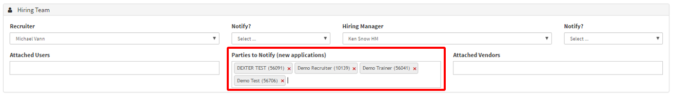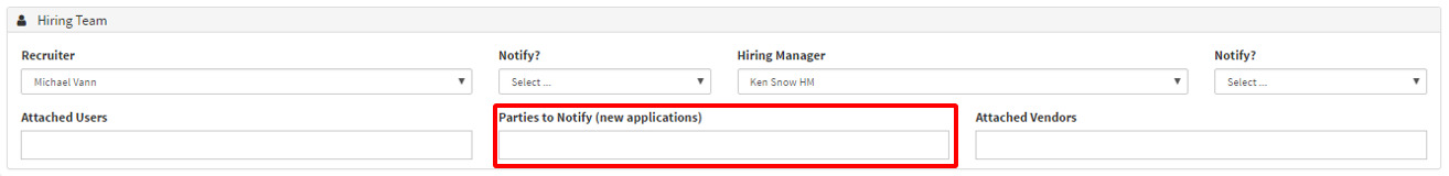 - Outlined in the section above is where you can add individuals to be notified of new applications in the requisition.