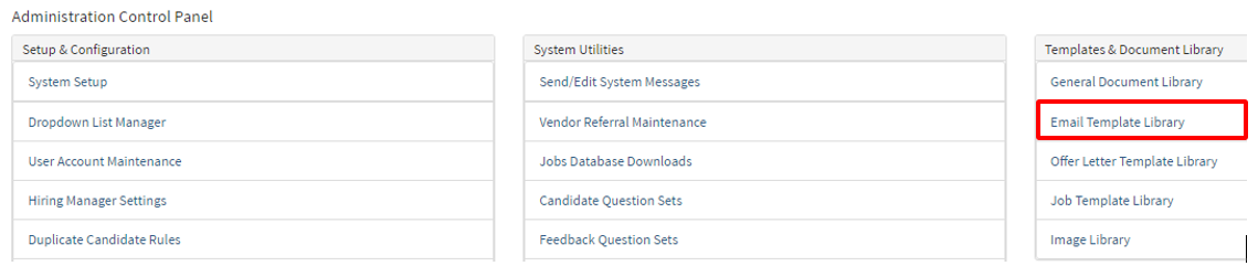 - On This page is where you will select "Email Template Library" in the "Templates & Document Library"