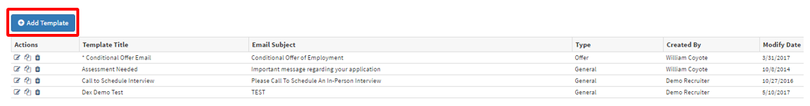 - Below is where you can enter a Template Title, Select the Template Type, and Email Subject.