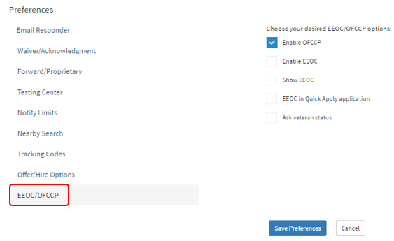 - This will take you to the Company preferences page where you will select "EEO/OFCCP" on the left column.