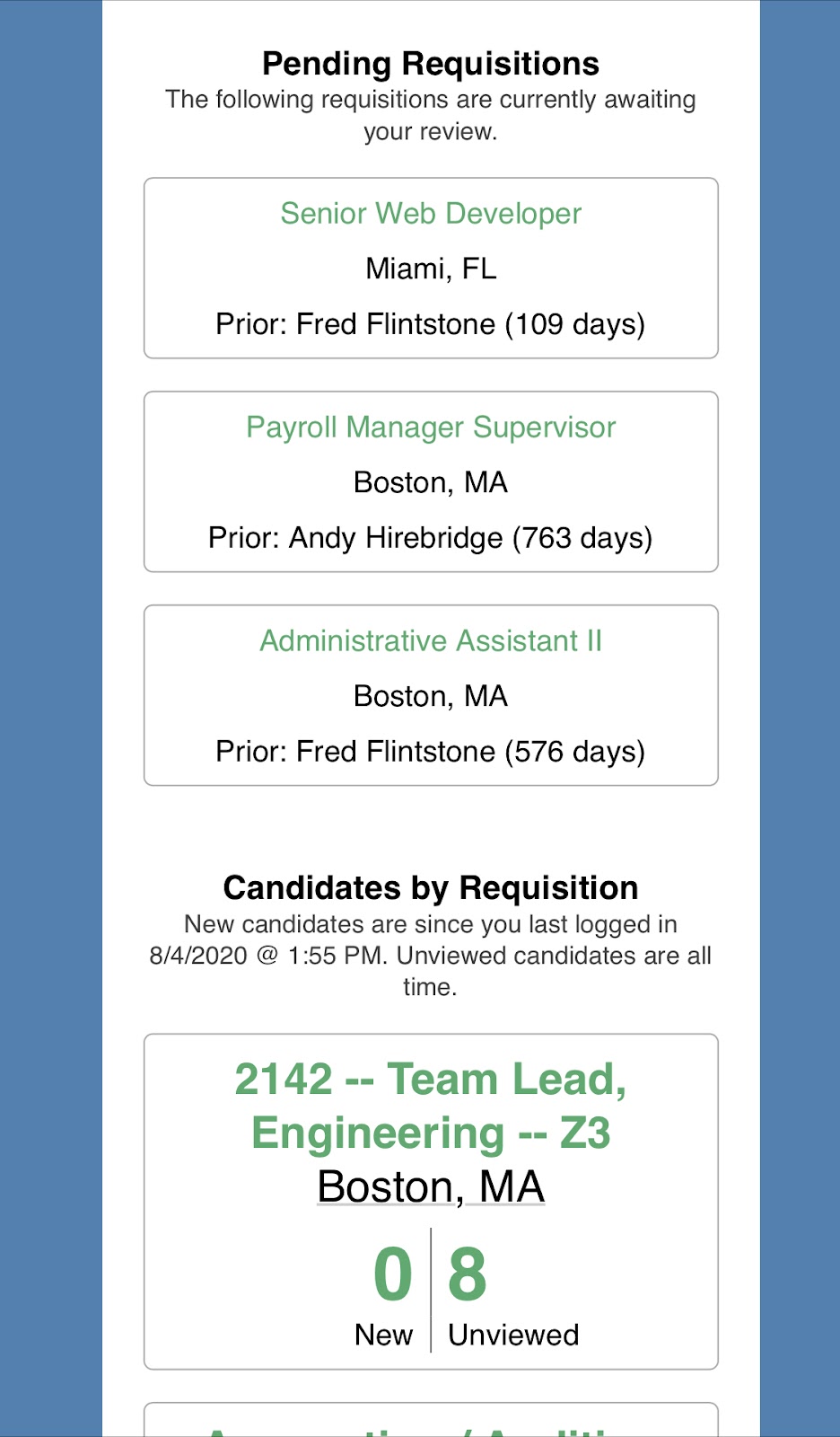 - New Candidates Since Your Last Login: See candidates who have applied for positions where you are part of the hiring team.